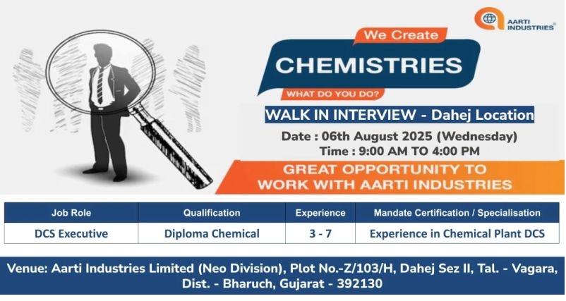 Aarti Industries -Walk In Interview For Production on 06 August 2025