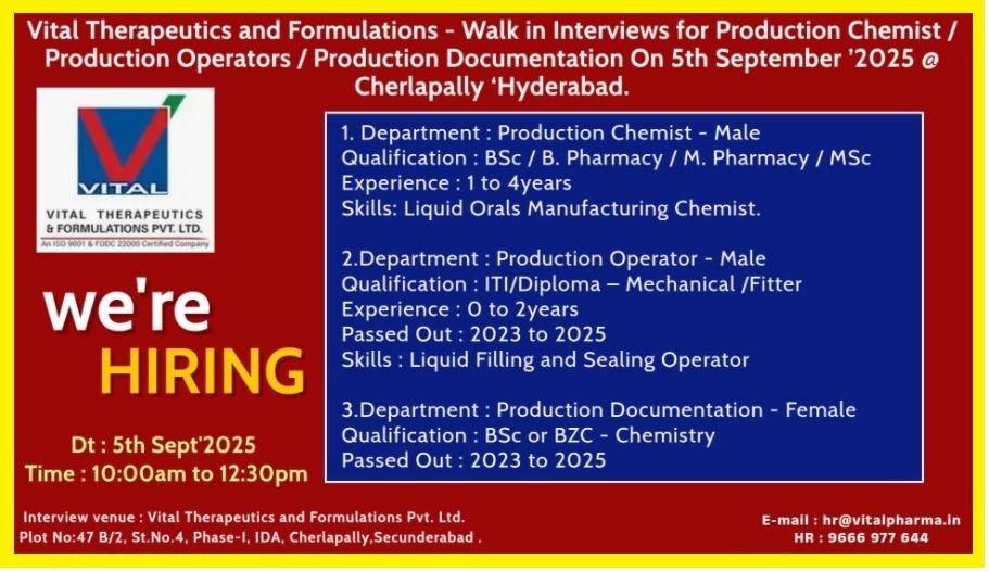 Eligibility : • M.Sc. Organic Chemistry / Ph.D Chemistry