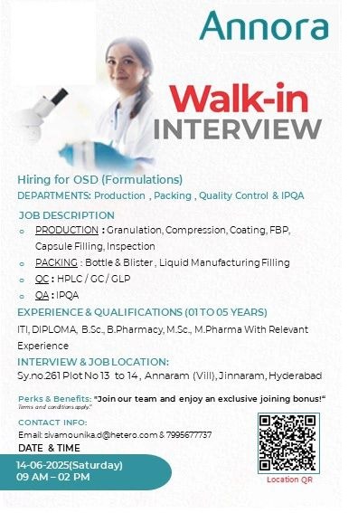 Annora -Walk-In Interview For QA, QC, Production & Packing on 14th June 2025
