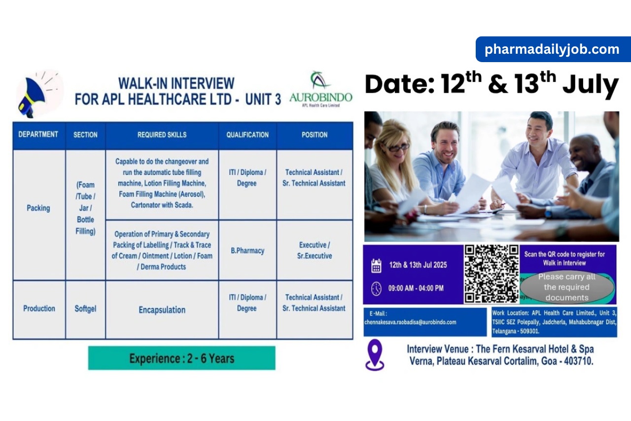 WALK-IN INTERVIEW FOR APL HEALTHCARE LTD UNIT 3