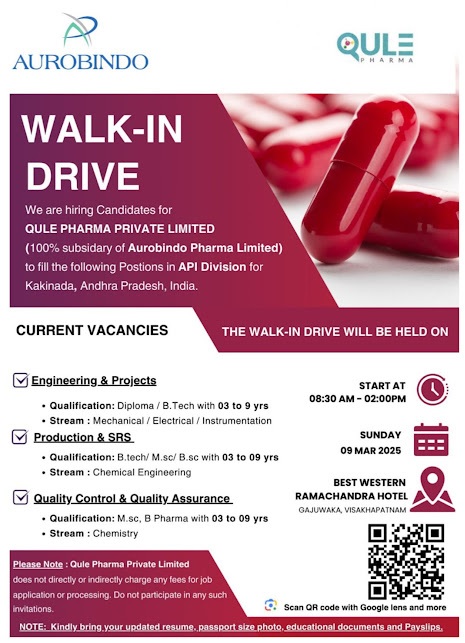 AUROBINDO WALK-IN DRIVE for QULE PHARMA PRIVATE LIMITED