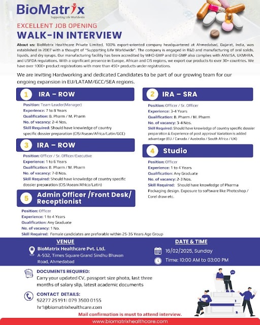 BioMatrix Healthcare Pvt Ltd – Walk-In Interview on 16/02/2025,Β