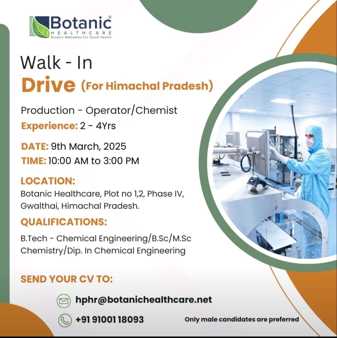 LOCATION:Botanic Healthcare, Plot no 1,2, Phase IV, Gwalthai, Himachal Pradesh.