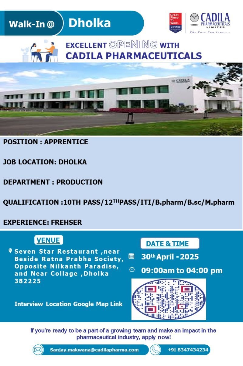 Cadila Pharma- Walk In Interview For Fresher On 30th April 2025 Cadila Pharma- Walk In Interview For Fresher On 30th April 2025 Post Views: 1,436 Job Category: Pharma Job Type: Full Time Job Location: Dholka plant Apply for this position Full Name *Email *Phone *Cover Letter *Upload CV/Resume *Allowed Type(s): .pdf, .doc, .docxBy using this form you agree with the storage and handling of your data by this website. *