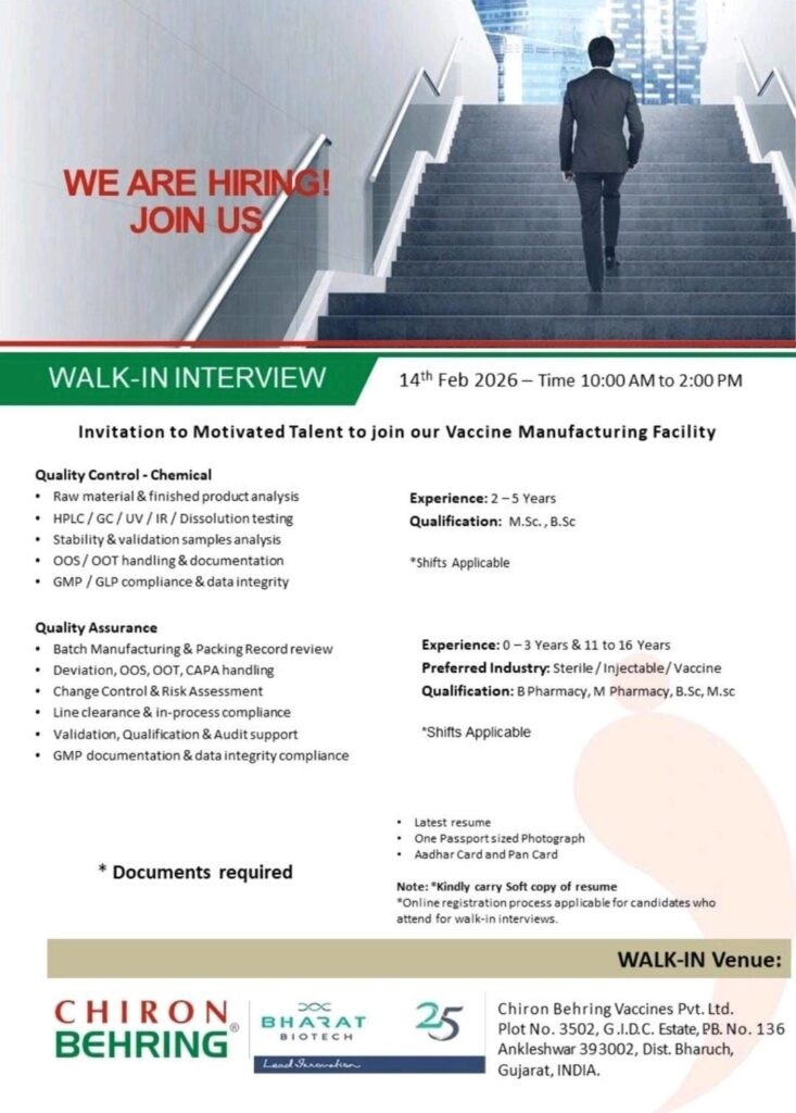 Invitation to Motivated Talent to join Vaccine Manufacturing Facility