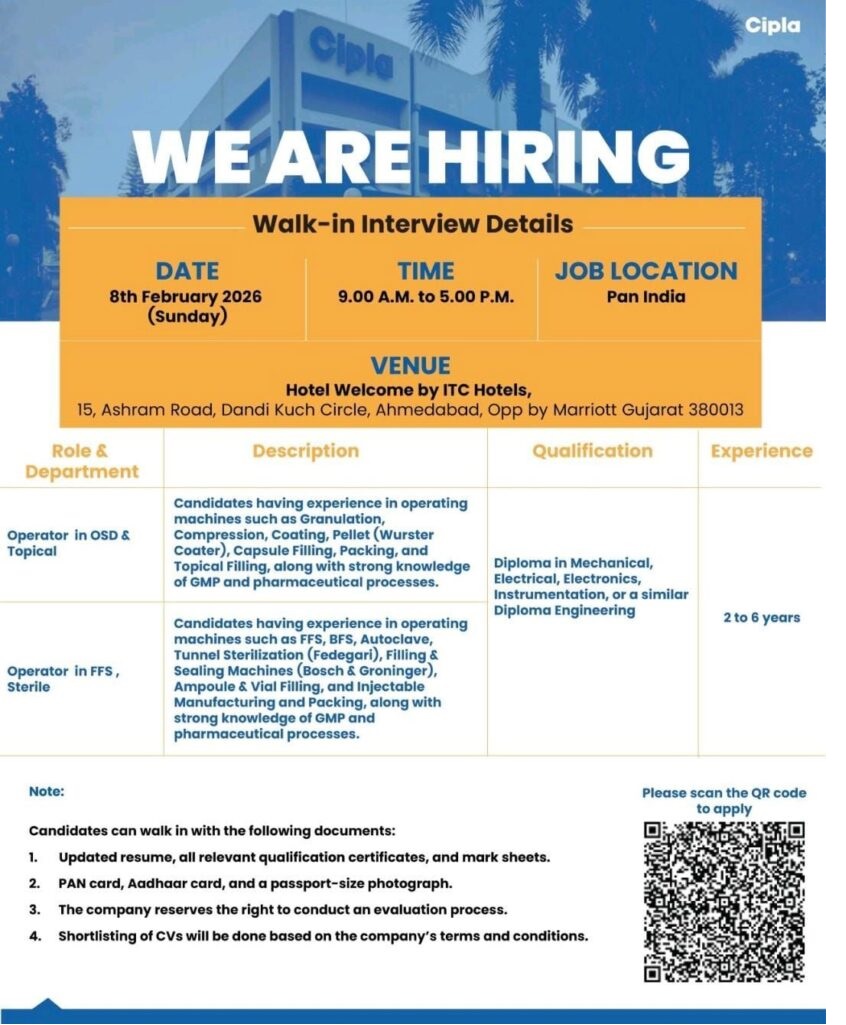 Experience –2 to 6 Years of relevant pharmaceutical manufacturing experience