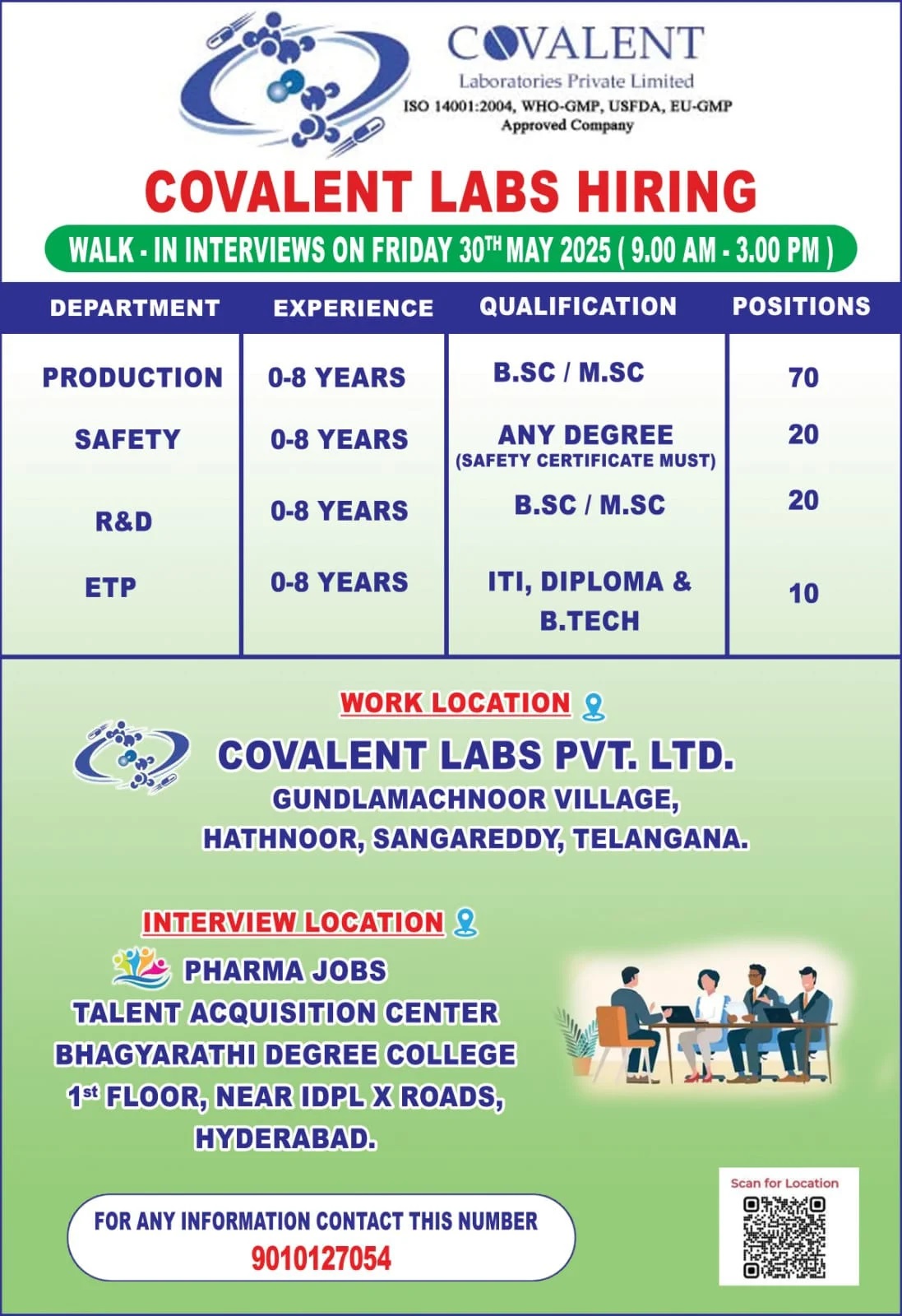 Venue: PHARMA JOBS, TALENT ACQUISITION CENTER, BHAGYARATHI DEGREE COLLEGE
