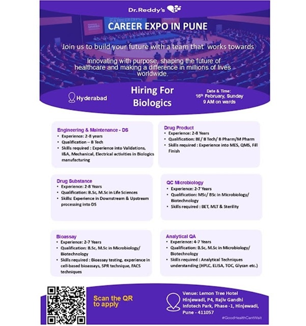 Dr. Reddy’s Laboratories- Walk in for Biologies – M.Pharm, B.Pharm, MSc on 16th February 2025@PUNE