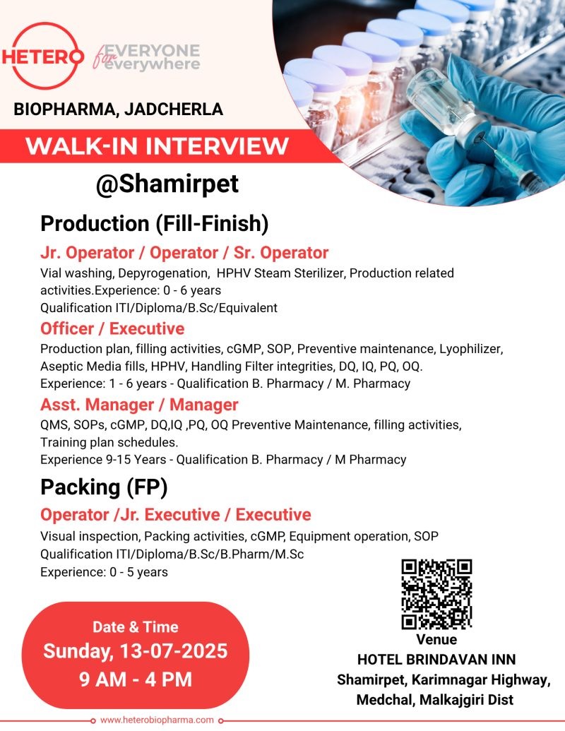 Hetero- Walk-In Interview For Production & Packing on 13th July 2025