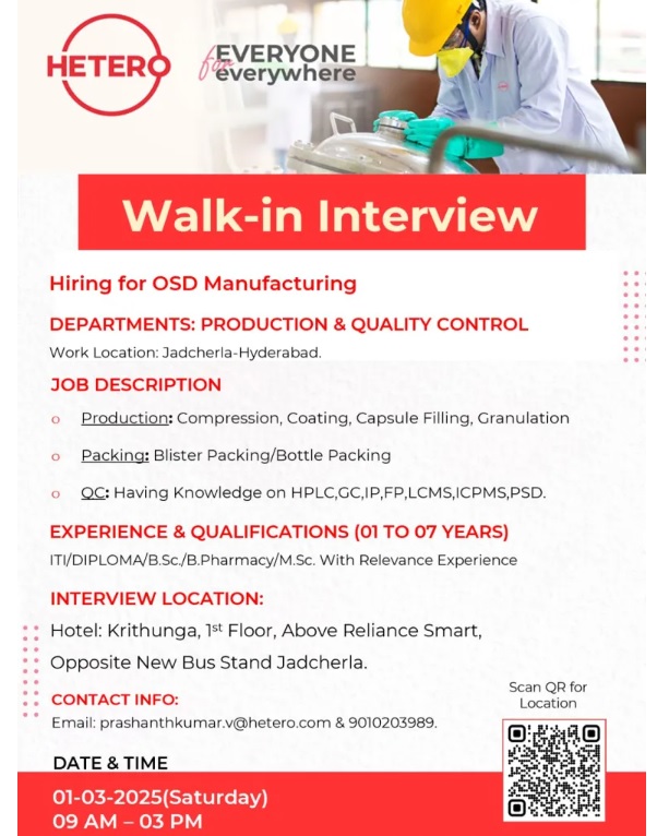 HETERO -Walk-in Interview for OSD Manufacturing on 1-03-2025