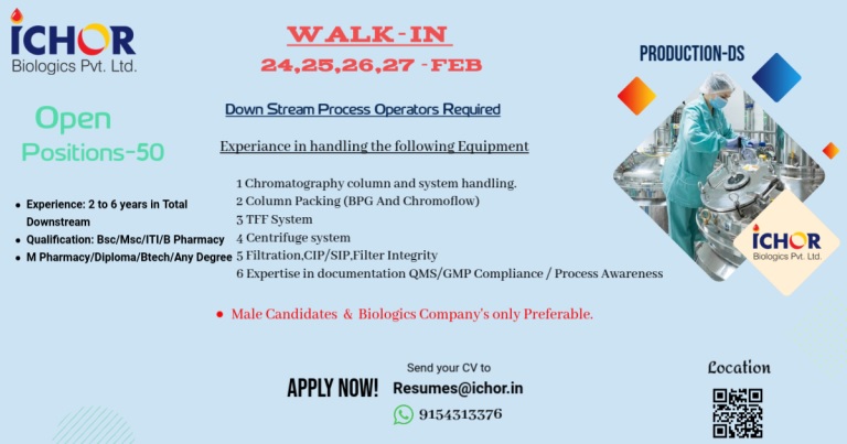 iCHOR Biologics Pvt. Ltd.-WALK-IN on 24,25,26,27-FEB 2025