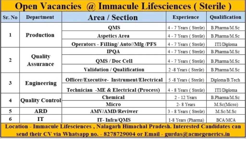 Immacule Lifesciences-Hiring for Production, QA, Engineering, QC, ARD and IT Department Immacule Lifesciences-Hiring for Production, QA, Engineering, QC, ARD and IT Department Post Views: 371 Apply for this position Full Name *Email *Phone *Cover Letter *Upload CV/Resume *Allowed Type(s): .pdf, .doc, .docxBy using this form you agree with the storage and handling of your data by this website. *