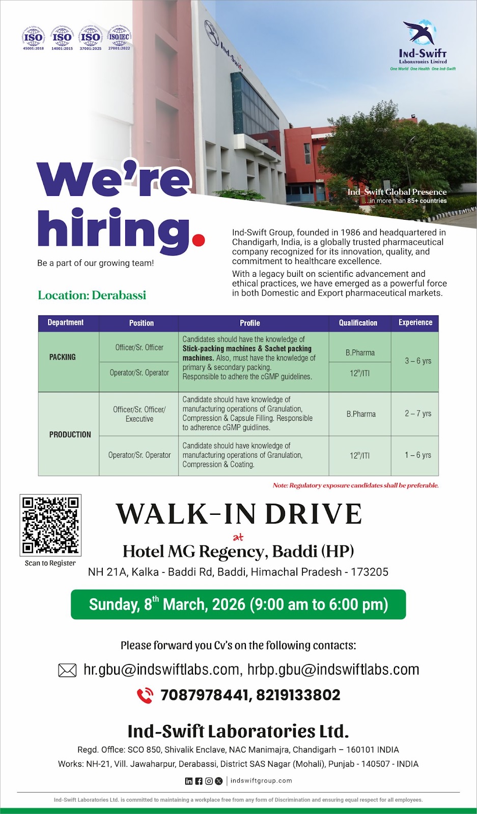 Profile : Candidates should have the knowledge of Stick-packing machines & Sachet packing machines. Also, must have the knowledge of primary & secondary packing. Responsible to adhere the cGMP guidelines.