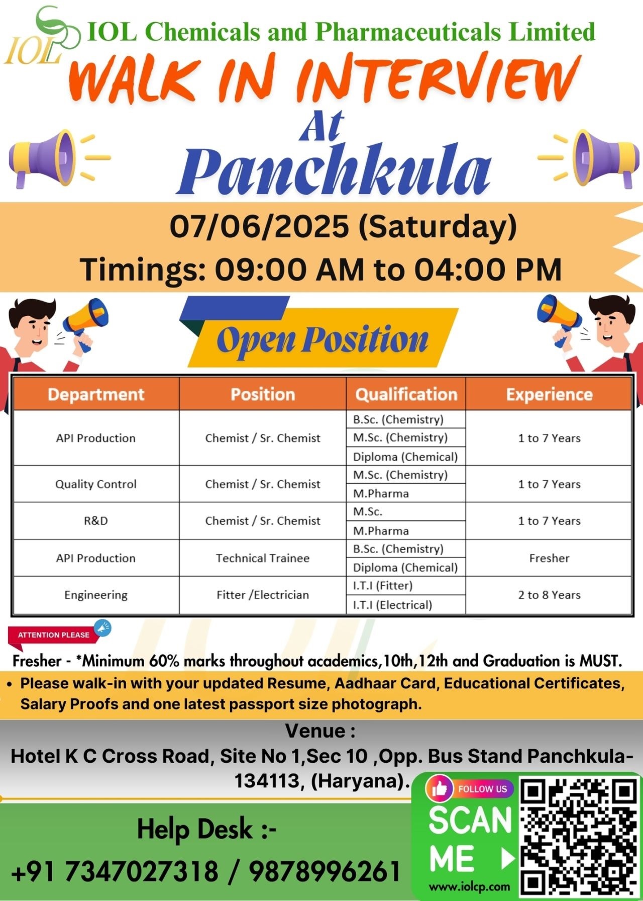 IOL Chemicals-Walk in for on 7th June 2025@ Panchkula IOL Chemicals-Walk in for on 7th June 2025@ Panchkula Post Views: 1,047 Job Category: Pharma Job Type: Full Time Job Location: Baddi Apply for this position Full Name *Email *Phone *Cover Letter *Upload CV/Resume *Allowed Type(s): .pdf, .doc, .docxBy using this form you agree with the storage and handling of your data by this website. *
