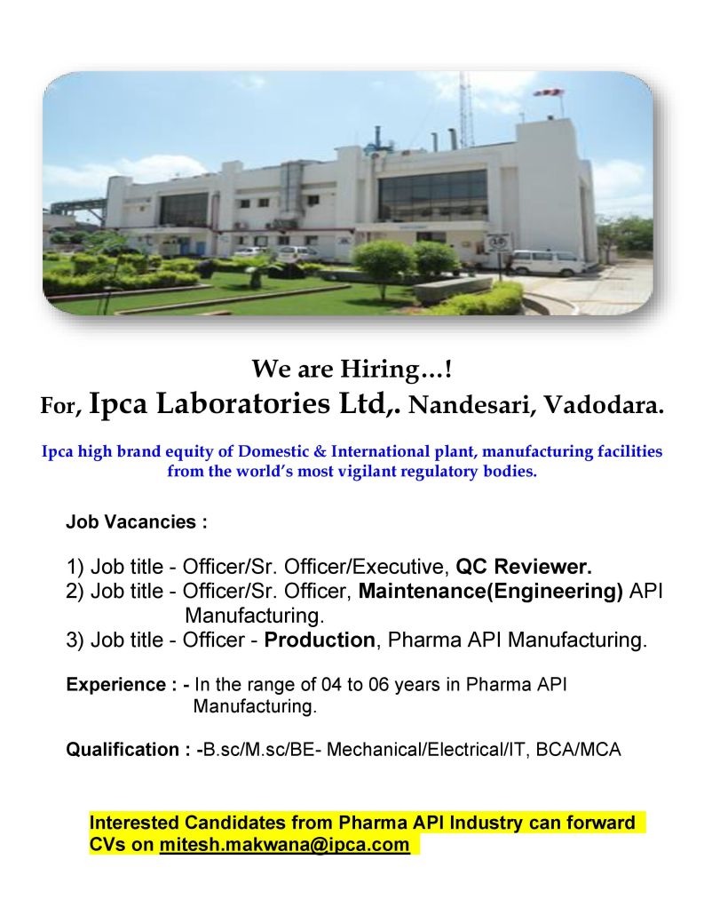 Ipca Laboratories- Hiring For Engineering & Production Apply Ipca Laboratories- Hiring For Engineering & Production Apply Post Views: 419 Job Category: Pharma Job Type: Full Time Job Location: Vadodara Apply for this position Full Name *Email *Phone *Cover Letter *Upload CV/Resume *Allowed Type(s): .pdf, .doc, .docxBy using this form you agree with the storage and handling of your data by this website. *