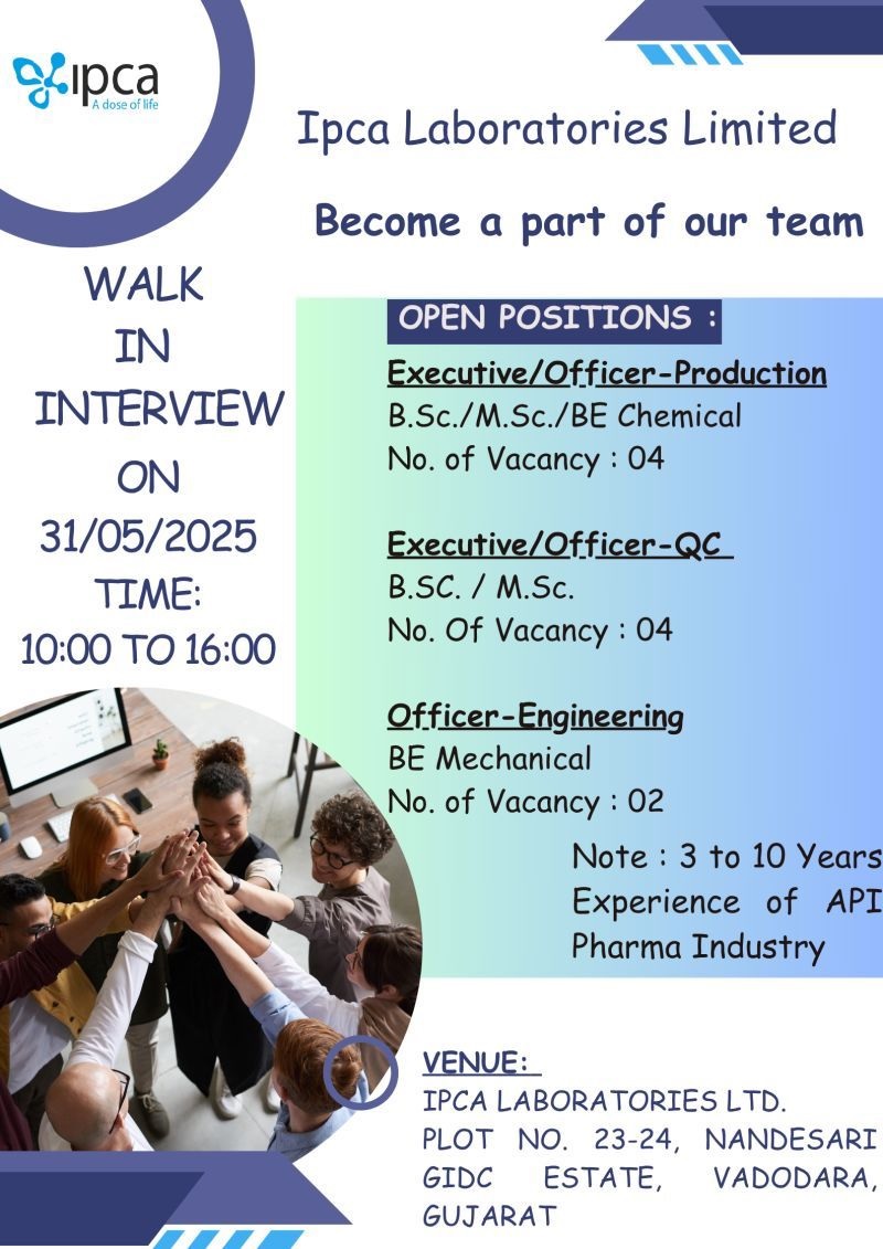 Ipca Laboratories- Walk In Interview For QC/Production & Engineering on May 31, 2025 Ipca Laboratories- Walk In Interview For QC/Production & Engineering on May 31, 2025 Post Views: 539 Job Category: Pharma Job Type: Full Time Job Location: Gujarat Apply for this position Full Name *Email *Phone *Cover Letter *Upload CV/Resume *Allowed Type(s): .pdf, .doc, .docxBy using this form you agree with the storage and handling of your data by this website. *