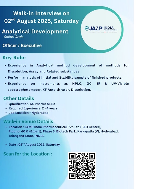 Location : JAMP India Pharmaceutical Pvt. Ltd (R&D Center), Plot no: 40 & 41(part),