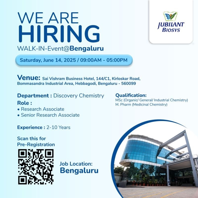 Jubilant Biosys -Walk-In Drive Discovery Chemistry Experts on , June 14, 2025,