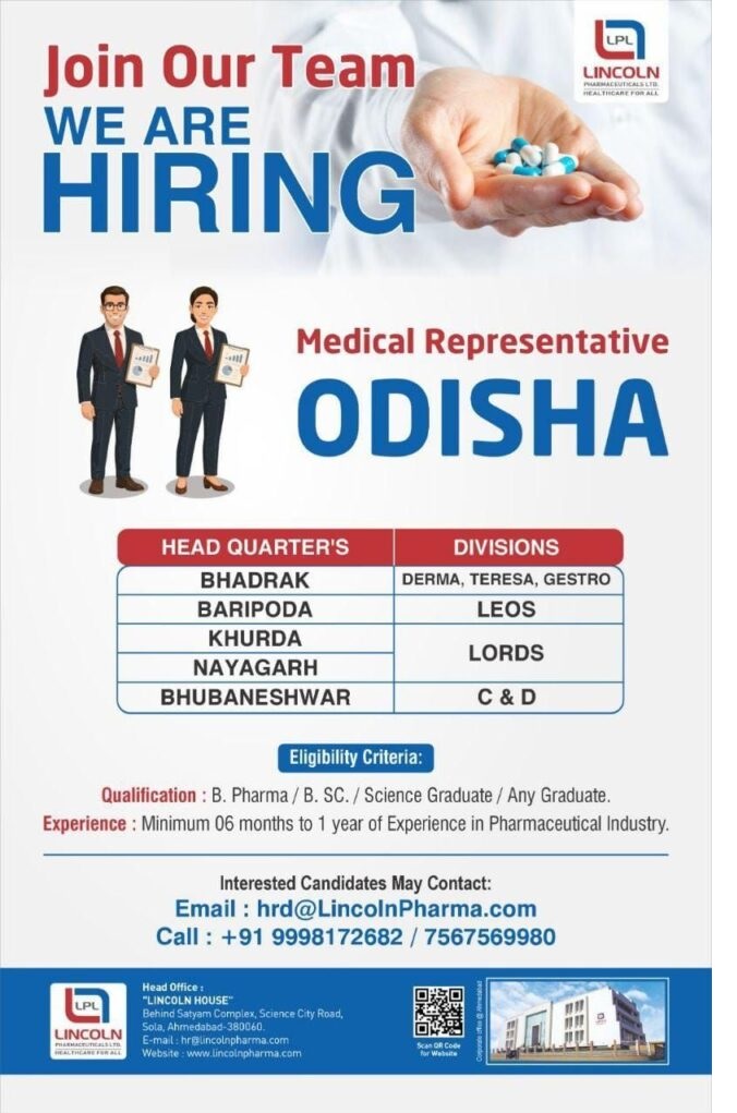 Lincoln Pharmaceuticals – Hiring Medical Representatives @ Odisha Lincoln Pharmaceuticals – Hiring Medical Representatives @ Odisha Post Views: 8 Job Category: Pharma Job Type: Full Time Job Location: odisha Apply for this position Full Name *Email *Phone *Cover Letter *Upload CV/Resume *Allowed Type(s): .pdf, .doc, .docxBy using this form you agree with the storage and handling of your data by this website. *