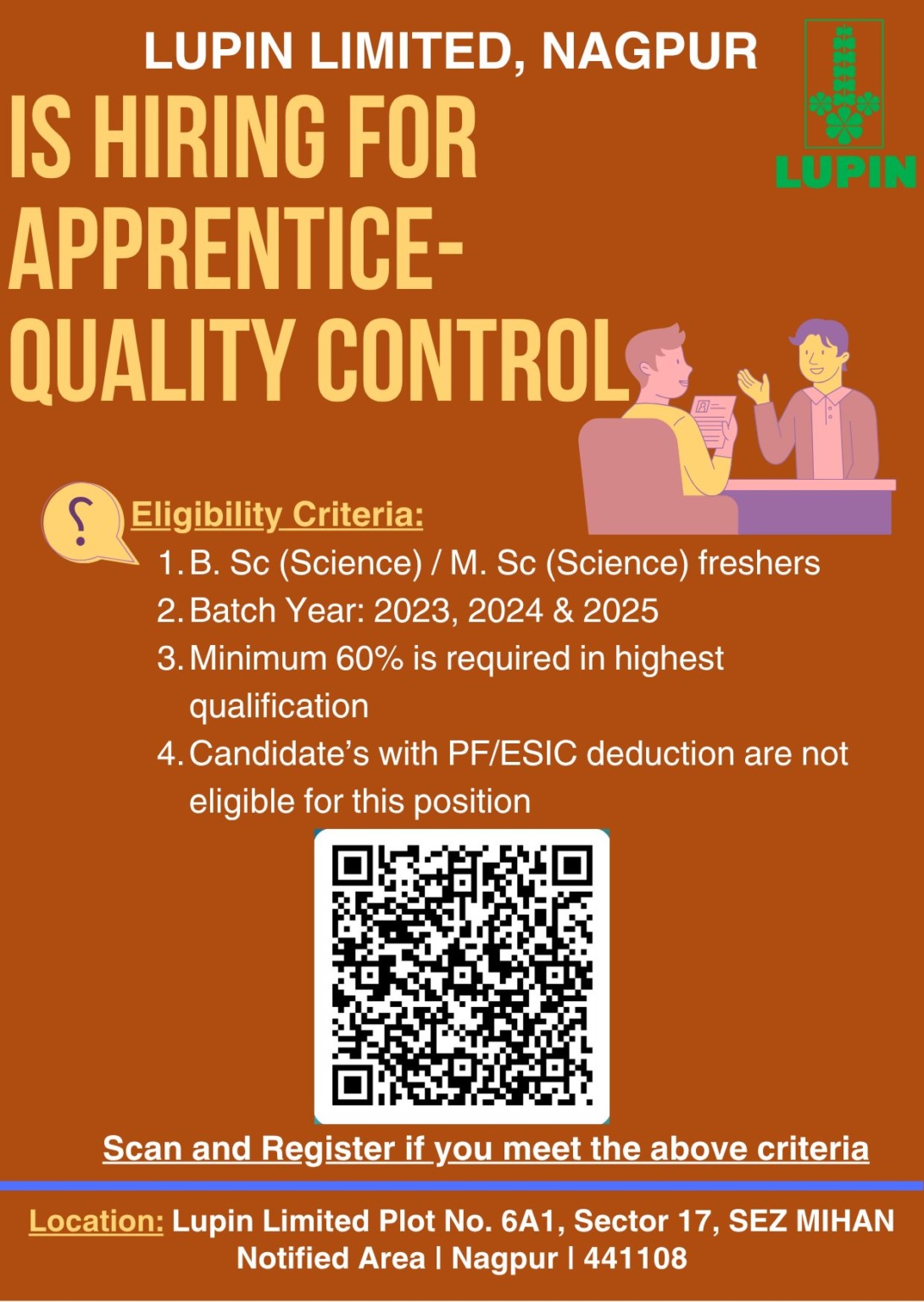 Lupin Limited -Hiring Quality Control Apprentices for Freshers 2023-2025 Batch Apply Now Lupin Limited -Hiring Quality Control Apprentices for Freshers 2023-2025 Batch Apply Now Post Views: 1,292 Job Category: Pharma Job Type: Full Time Job Location: Nagpur Apply for this position Full Name *Email *Phone *Cover Letter *Upload CV/Resume *Allowed Type(s): .pdf, .doc, .docxBy using this form you agree with the storage and handling of your data by this website. *