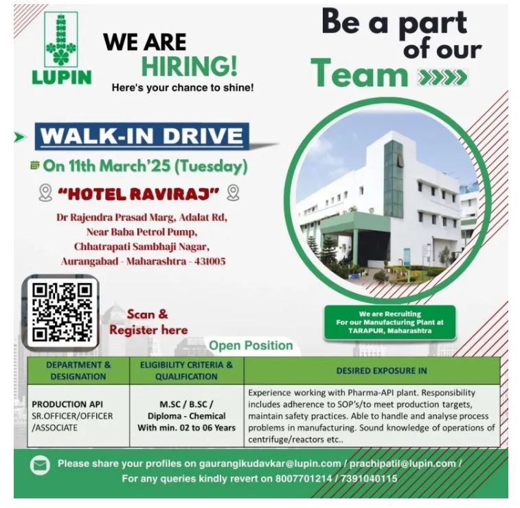 LUPIN LIMITED-WALK-IN DRIVE for PRODUCTION API on 11th March’25