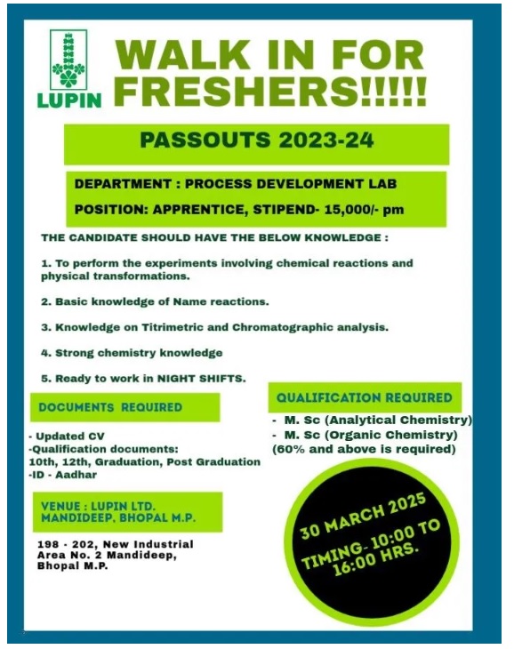 Lupin Ltd-Walk-in for FRESHERS on 30th March 2025Lupin Ltd-Walk-in