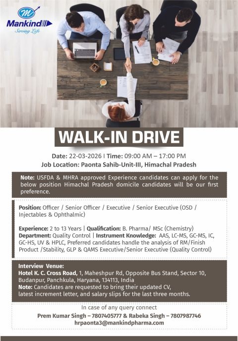 Mankind Pharma- Walk-In Drive For QC 22nd March 2026