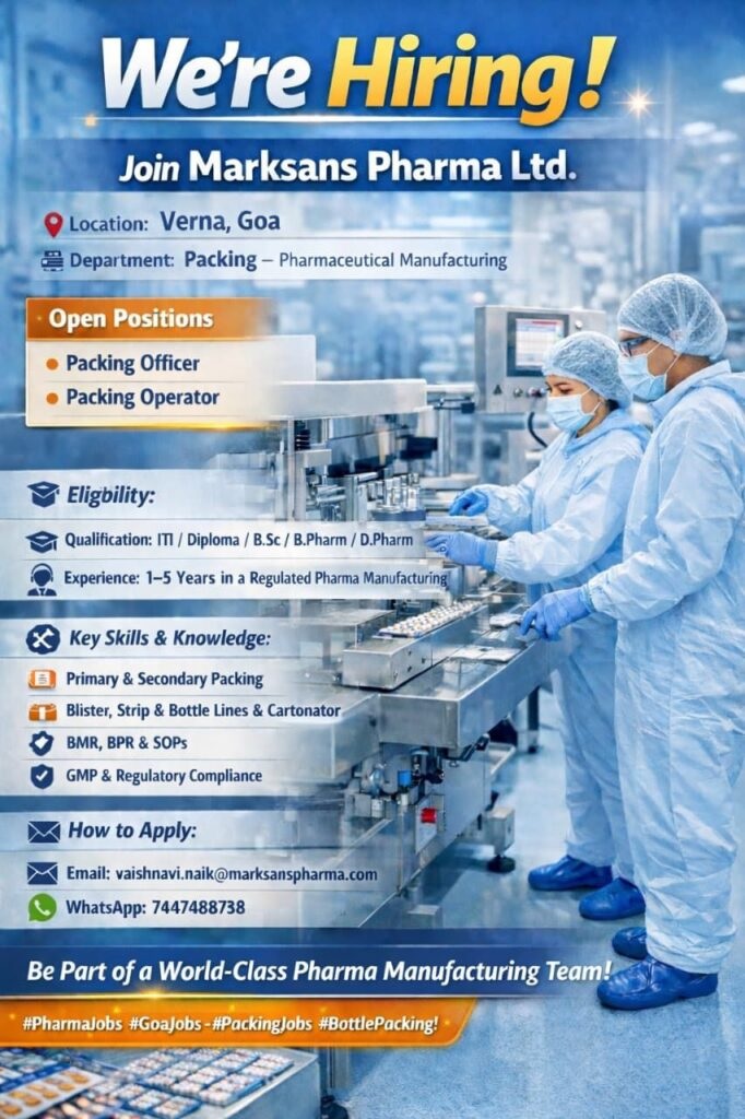 Marksans Pharma- Hiring for Packing Marksans Pharma- Hiring for Packing Post Views: 11 Job Category: Pharma Job Type: Full Time Job Location: goa Apply for this position Full Name *Email *Phone *Cover Letter *Upload CV/Resume *Allowed Type(s): .pdf, .doc, .docxBy using this form you agree with the storage and handling of your data by this website. *