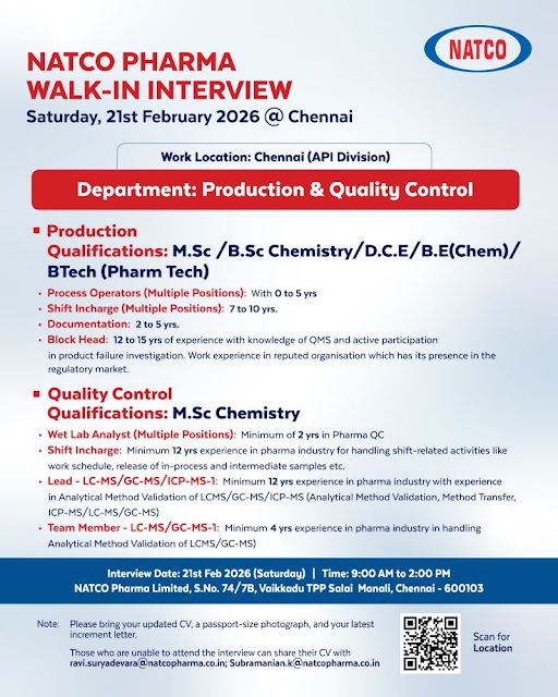 NATCO PHARMA WALK-IN INTERVIEW