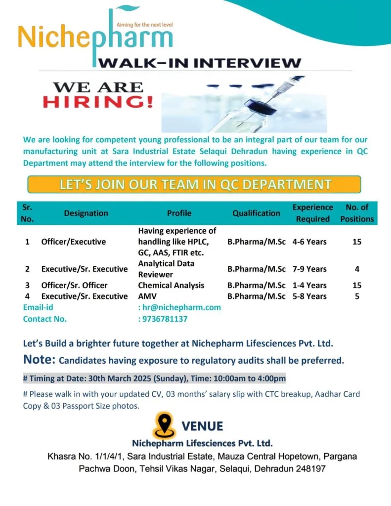 NichePharm-Walk-In Drive for QC Department on 30th March 2025