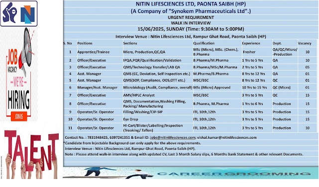 Venue : Nitin Lifesciences Ltd, Rampur Ghat Road, Paonta Saibh (HP)