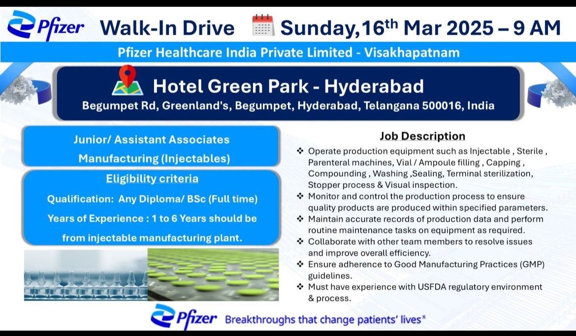 Pfizer- Walk In Drive On 16th March 2025 Pfizer- Walk In Drive On 16th March 2025 Post Views: 747 Job Category: Pharma Job Type: Full Time Job Location: Hyderabad Apply for this position Full Name *Email *Phone *Cover Letter *Upload CV/Resume *Allowed Type(s): .pdf, .doc, .docxBy using this form you agree with the storage and handling of your data by this website. *