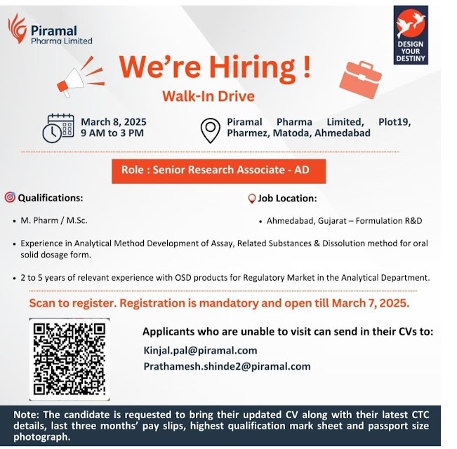 Venue : Piramal Pharma Limited, Plot19, ‘ Pharmez, Matoda, Ahmedabad