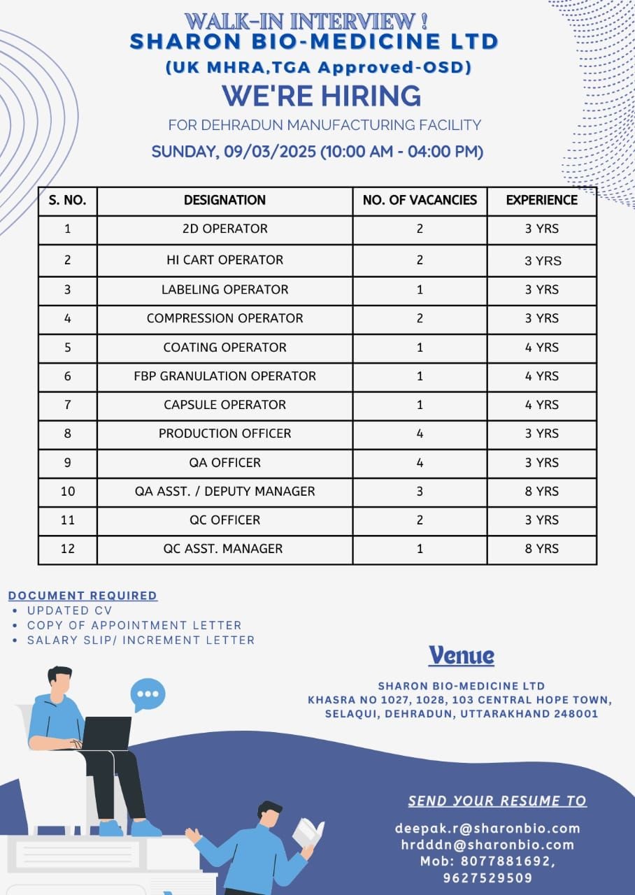SHARON BIO-MEDICINE LTD-WALK-IN INTERVIEW on 09/03/2025