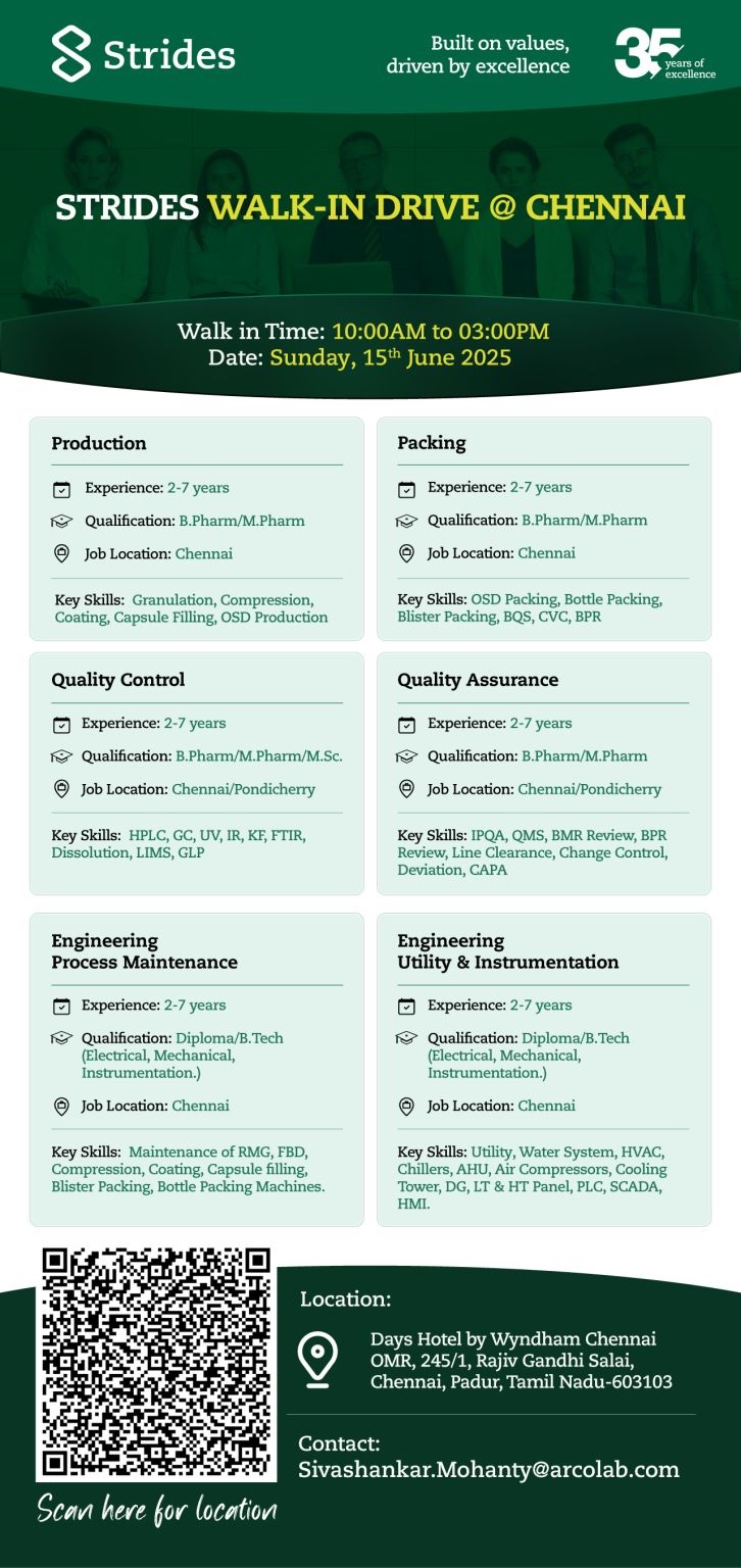 Qualification : B.Pharm/M.Pharm/M.Sc.