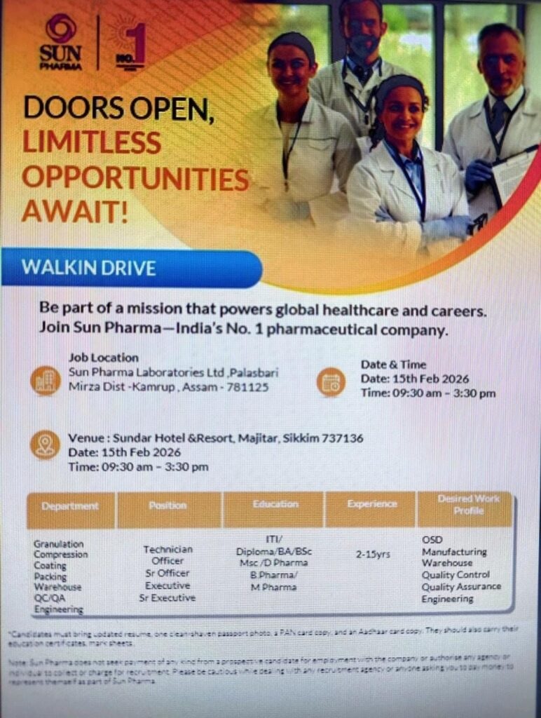 Job Location: Sun Pharma Laboratories Ltd., Palasbari,