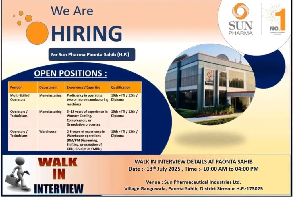 Sun Pharma-Walk-In interviews on 13th July 2025 Sun Pharma-Walk-In interviews on 13th July 2025 Post Views: 423 Job Category: Pharma Job Type: Full Time Job Location: poanta sahib Apply for this position Full Name *Email *Phone *Cover Letter *Upload CV/Resume *Allowed Type(s): .pdf, .doc, .docxBy using this form you agree with the storage and handling of your data by this website. *