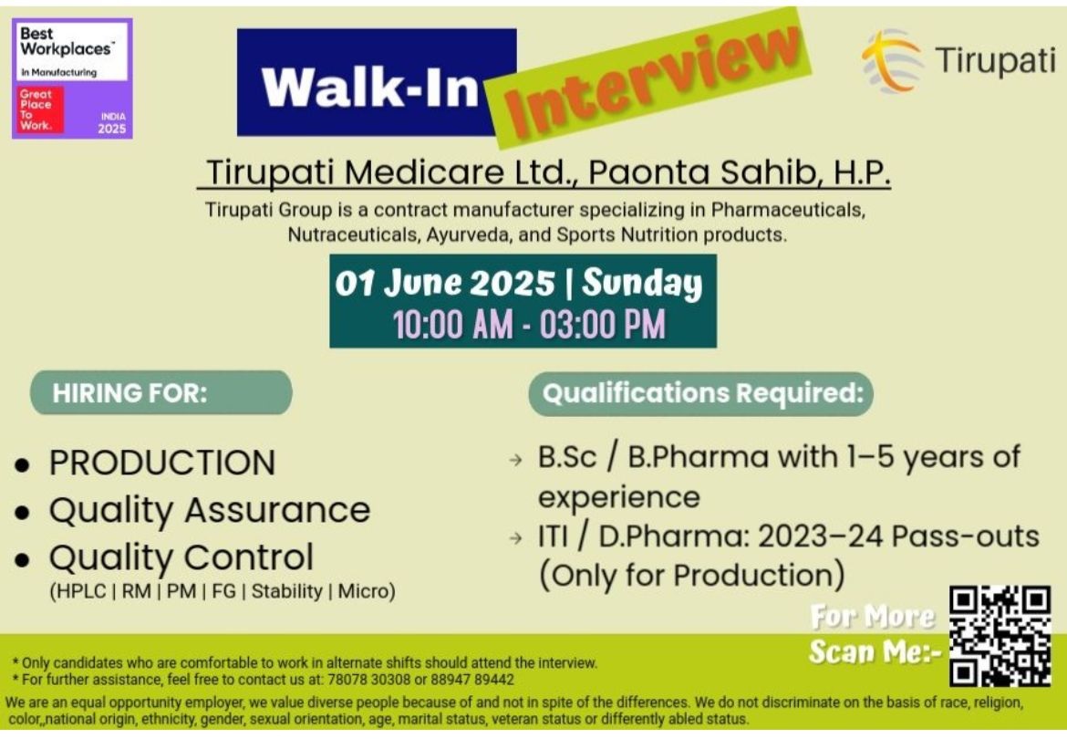 Tirupati- Walk In Interview For Production/ QA and QC on June 1, 2025 Tirupati- Walk In Interview For Production/ QA and QC on June 1, 2025 Post Views: 1,042 Job Category: Pharma Job Type: Full Time Job Location: poanta sahib Apply for this position Full Name *Email *Phone *Cover Letter *Upload CV/Resume *Allowed Type(s): .pdf, .doc, .docxBy using this form you agree with the storage and handling of your data by this website. *
