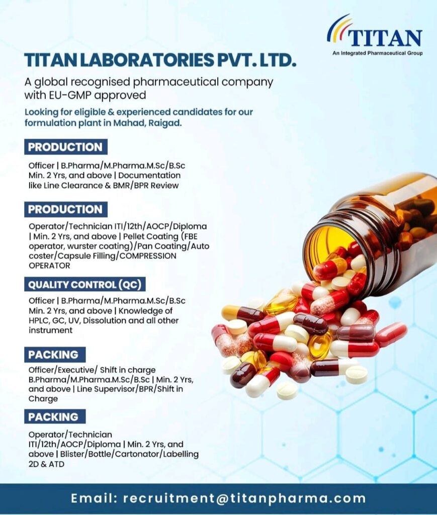 Titan Laboratories Pvt. Ltd.-Hiring Titan Laboratories Pvt. Ltd.-Hiring Post Views: 962 Job Category: Pharma Job Type: Full Time Job Location: MAHAD (RAIGAD) Apply for this position Full Name *Email *Phone *Cover Letter *Upload CV/Resume *Allowed Type(s): .pdf, .doc, .docxBy using this form you agree with the storage and handling of your data by this website. *