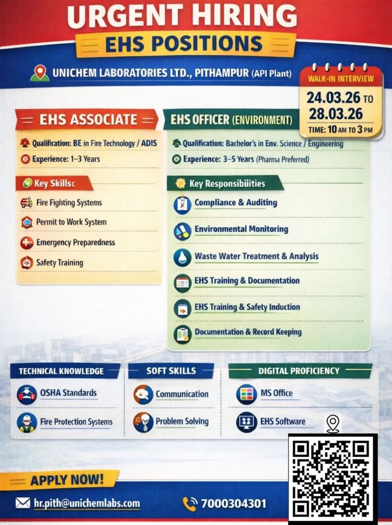 Unichem Laboratories-Walk-in for EHS on 24th to 28th March 2026 @ Pithampur Unichem Laboratories-Walk-in for EHS on 24th to 28th March 2026 @ Pithampur Post Views: 185 Job Category: Pharma Job Type: Full Time Job Location: Pithampur Apply for this position Full Name *Email *Phone *Cover Letter *Upload CV/Resume *Allowed Type(s): .pdf, .doc, .docxBy using this form you agree with the storage and handling of your data by this website. *