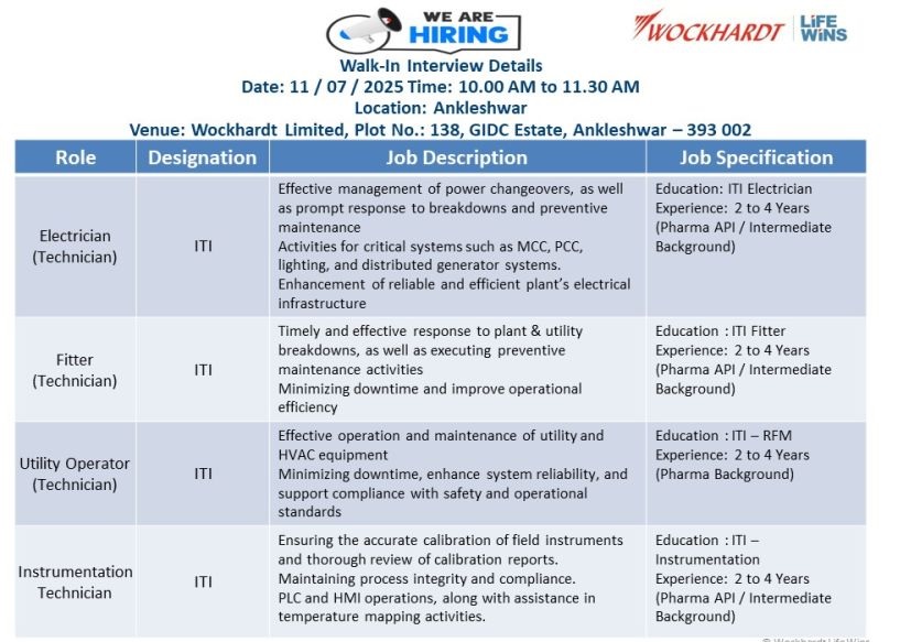 Wockhardt -Walk-In Interview On 11th July 2025 Wockhardt -Walk-In Interview On 11th July 2025 Post Views: 319 Job Category: Pharma Job Type: Full Time Job Location: Ankleshwar – Gujarat Apply for this position Full Name *Email *Phone *Cover Letter *Upload CV/Resume *Allowed Type(s): .pdf, .doc, .docxBy using this form you agree with the storage and handling of your data by this website. *