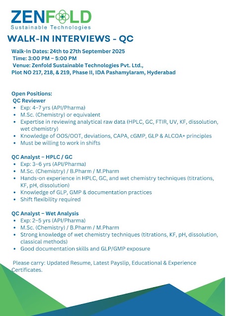 ZENFOLD-Walk In Interview For QC on 24th to 27th September 2025