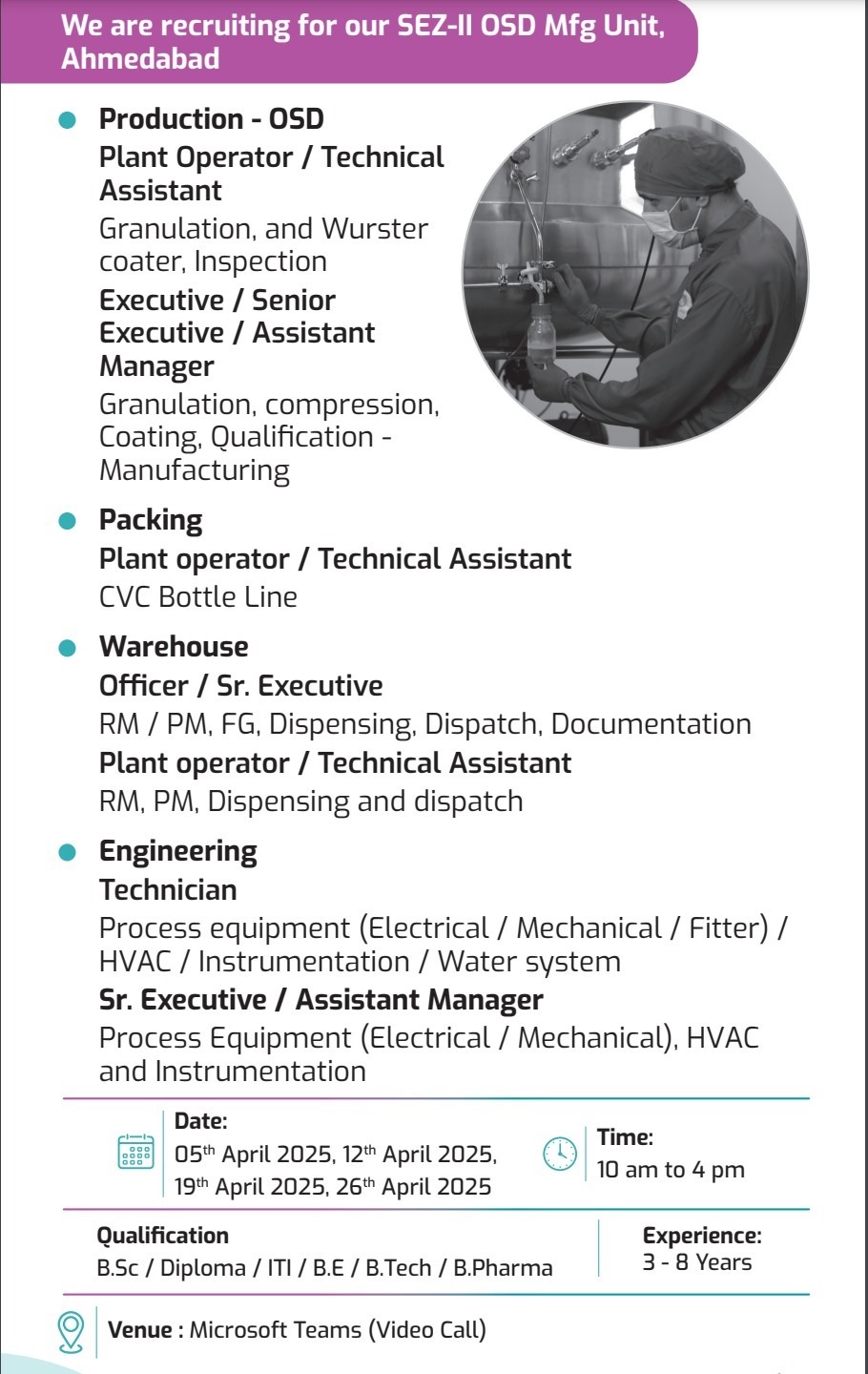 Zydus Lifescience- Walk In Interview For Engineering/ Warehouse/ Packing & Production on 5th 12th,19th 26th April 2025 Zydus Lifescience- Walk In Interview For Engineering/ Warehouse/ Packing & Production on 5th 12th,19th 26th April 2025 Post Views: 759 Apply for this position Full Name *Email *Phone *Cover Letter *Upload CV/Resume *Allowed Type(s): .pdf, .doc, .docxBy using this form you agree with the storage and handling of your data by this website. *