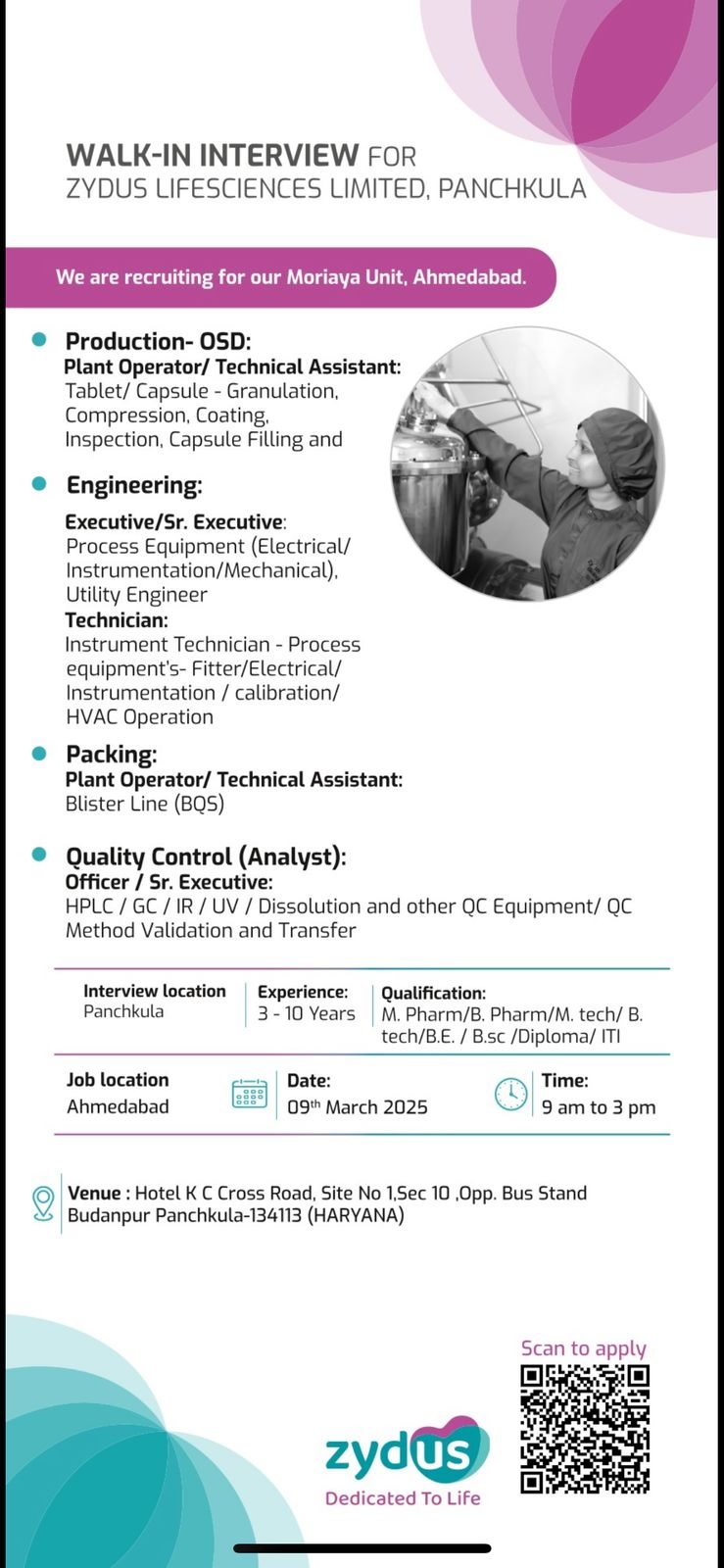 Education Qualification : M.Pharm / B.Pharm / M. tech / B. tech / B.E. / B.sc / Diploma / ITI