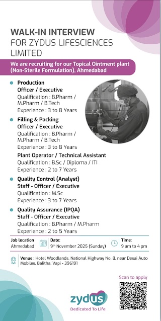 Qualification : B.Pharm / M.Pharm / B.Tech