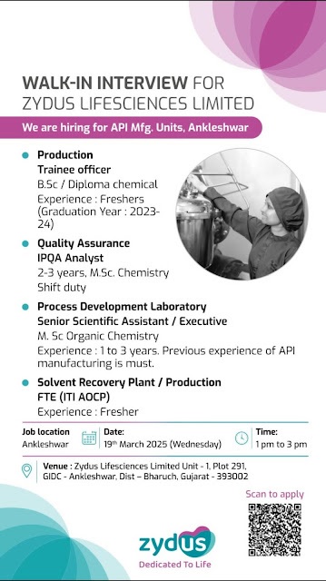 Zydus Lifesciences -Walk In Interview on 19th March 2025