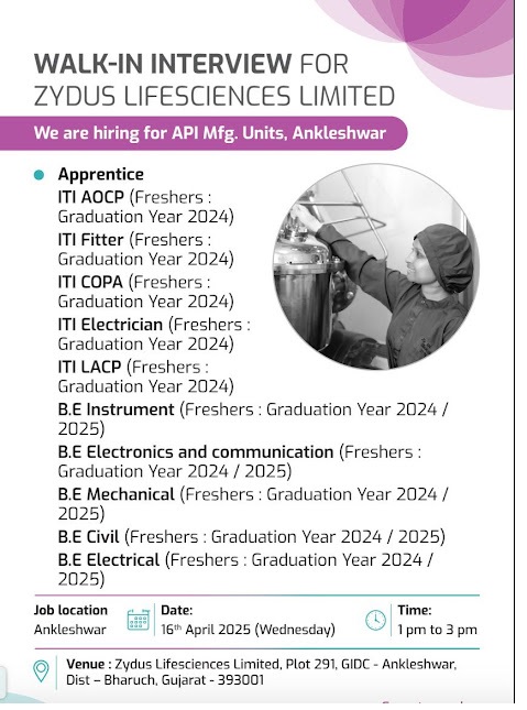 Zydus Lifesciences -Walk In Interview For API Manufacturing Unit – Freshers on 16th April 2025 Zydus Lifesciences -Walk In Interview For API Manufacturing Unit – Freshers on 16th April 2025 Post Views: 1,041 Job Category: Pharma Job Type: Full Time Job Location: Ahmedabad Apply for this position Full Name *Email *Phone *Cover Letter *Upload CV/Resume *Allowed Type(s): .pdf, .doc, .docxBy using this form you agree with the storage and handling of your data by this website. *