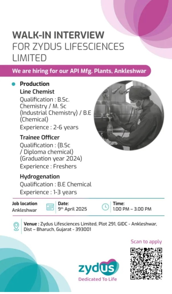 Zydus-Walk-In Interview for Freshers Production on 9 April 2025 Zydus-Walk-In Interview for Freshers Production on 9 April 2025 Post Views: 1,218 Job Category: Pharma Job Type: Full Time Job Location: Ahmedabad Apply for this position Full Name *Email *Phone *Cover Letter *Upload CV/Resume *Allowed Type(s): .pdf, .doc, .docxBy using this form you agree with the storage and handling of your data by this website. *