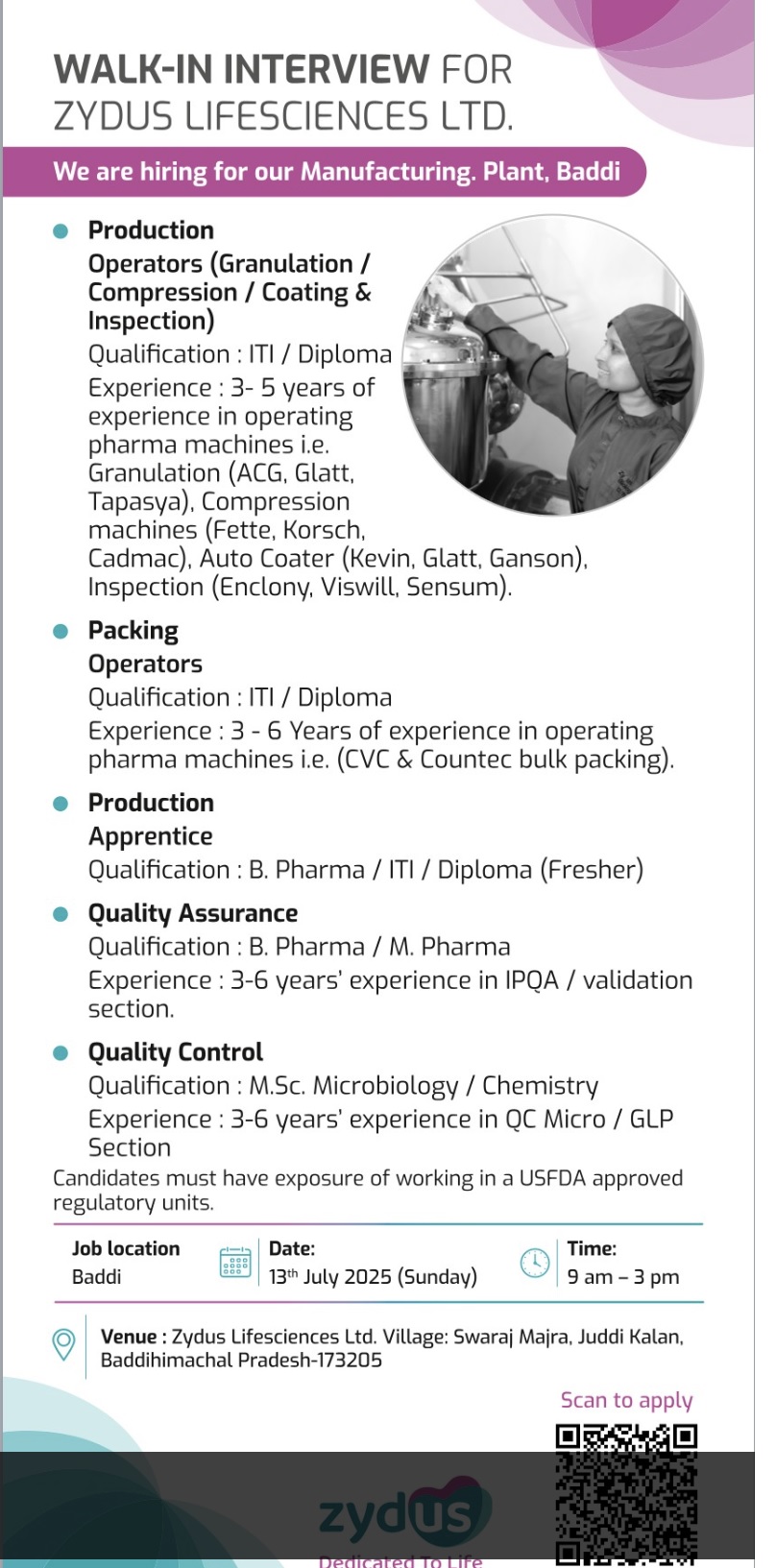 Zydus -Walk-In Interview For Production, Packing, QA & QC on 13th July 2025@Baddi Zydus -Walk-In Interview For Production, Packing, QA & QC on 13th July 2025@Baddi Post Views: 457 Job Category: Pharma Job Type: Full Time Job Location: Baddi Apply for this position Full Name *Email *Phone *Cover Letter *Upload CV/Resume *Allowed Type(s): .pdf, .doc, .docxBy using this form you agree with the storage and handling of your data by this website. *